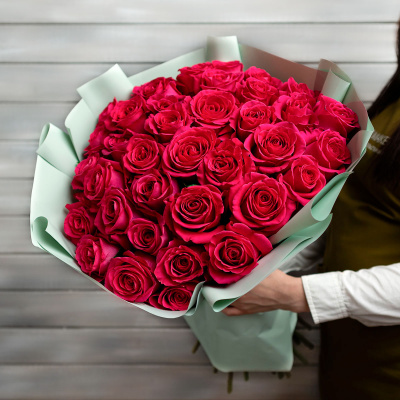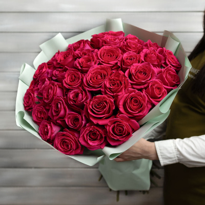 37 малиновых роз Эквадор 60 см в упаковке| 13 200 Р | без скидки |