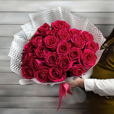 23 малиновые розы Эквадор 60 см в упаковке| 8 600 Р | без скидки |