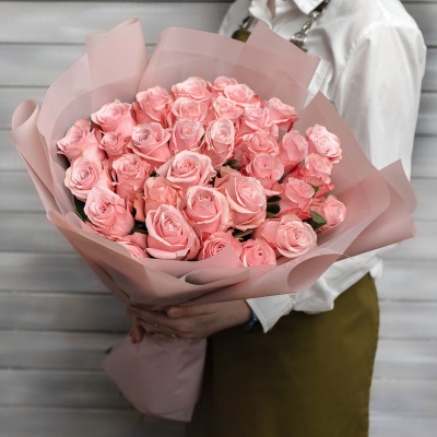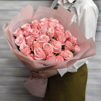 33 розовые розы Эквадор 60 см в упаковке| 10 600 Р | без скидки |