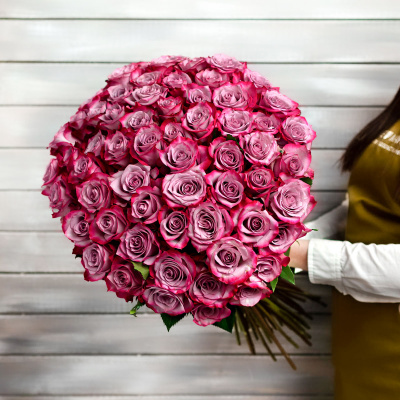 65 фиолетовых роз Эквадор 50 см| 15 100 Р | без скидки |