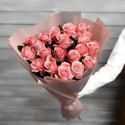 19 розовых роз Эквадор 60 см в упаковке| 6 300 Р | без скидки |