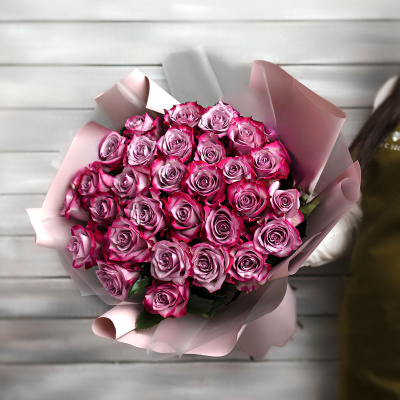 29 фиолетовых роз Эквадор 60 см в упаковке| 9 100 Р | без скидки |