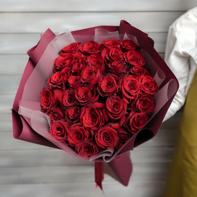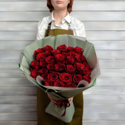 29 красных роз Эквадор 50 см в упаковке| 6 900 Р | без скидки |