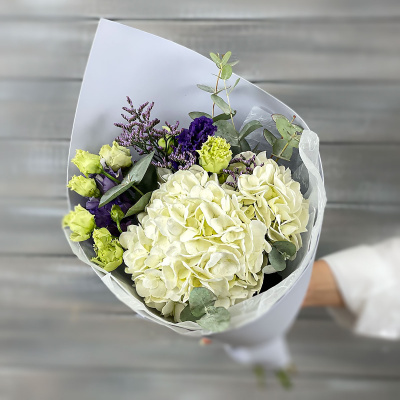 Букет из гортензии, эустом и лимониума| 3 500 Р | без скидки |