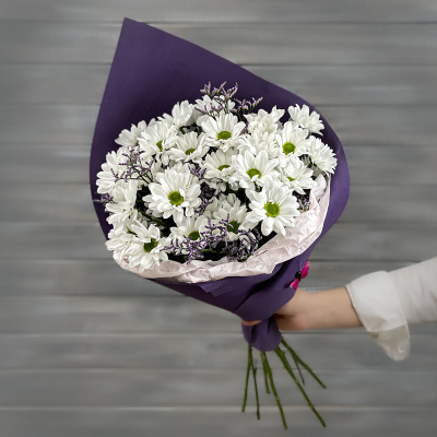 Букет из белых хризантем и лимониума| 3 700 Р | без скидки |