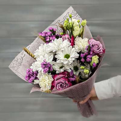 Букет из хризантем, роз и статицы| 4 000 Р | без скидки |