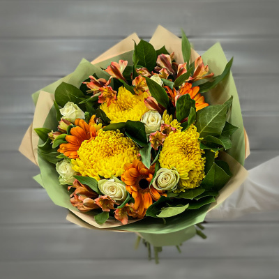 Букет из гербер, хризантем, роз и альстромерий| 5 300 Р | без скидки |