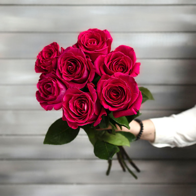 7 малиновых роз с лентой Эквадор 60 см| 3 700 Р | без скидки |