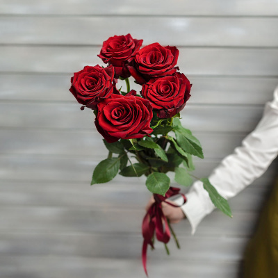 5 красных роз с лентой Эквадор 60 см| 2 800 Р | без скидки |