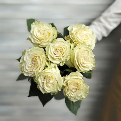 7 белых роз с лентой Эквадор 60 см| 3 700 Р | без скидки |