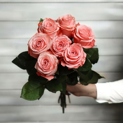 7 розовых роз с лентой Эквадор 60 см| 3 300 Р | без скидки |