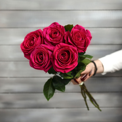 5 малиновых роз с лентой Эквадор 60 см| 2 700 Р | без скидки |