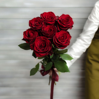 7 красных роз с лентой Эквадор 60 см| 3 700 Р | без скидки |
