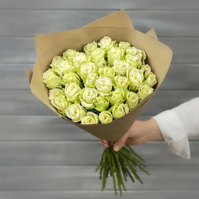 Букет из 39 белых роз в крафте Кения 40 см.5 180 Р