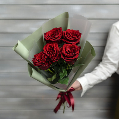 5 красных роз Эквадор 50 см в упаковке| 1 900 Р | без скидки |
