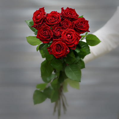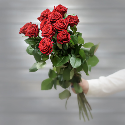 Букет из 11 красных роз (Россия) с лентой 60 см| 3 200 Р | без скидки |