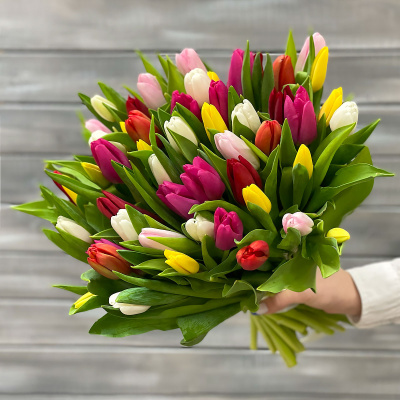 Букет из 51 разноцветного тюльпана| 10 800 Р | без скидки |