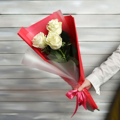 3 белые розы Эквадор 50 см в упаковке| 1 100 Р | без скидки |