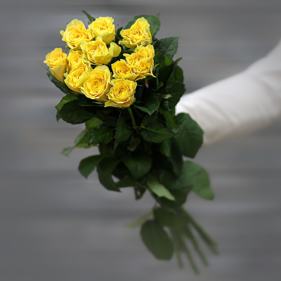 Букет из 11 желтых роз (Россия) с лентой 60 см| 2 500 Р | без скидки |
