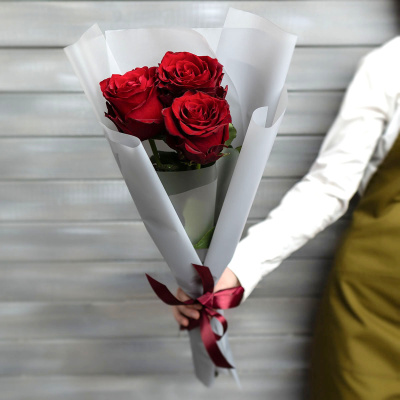 3 красные розы Эквадор 50 см в упаковке| 1 100 Р | без скидки |