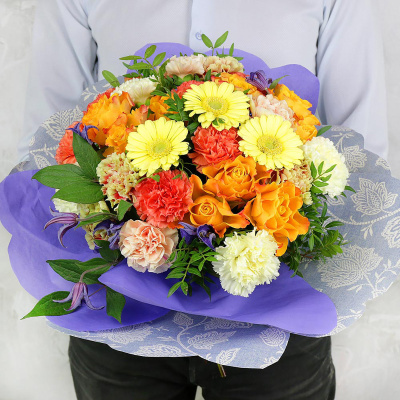 Букет из лунной гвоздики, гербер и клематиса| 6 600 Р | без скидки |