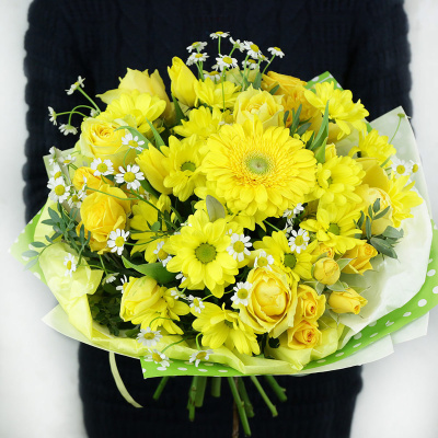 Яркий букет из хризантемы, ромашки и герберы| 5 500 Р | без скидки |