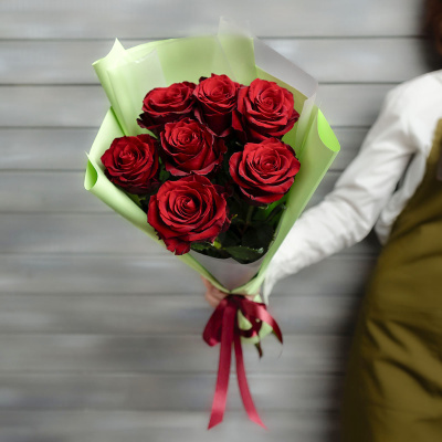 7 красных роз Эквадор 50 см в упаковке| 2 500 Р | без скидки |