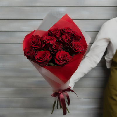 11 красных роз Эквадор 50 см в упаковке| 3 800 Р | без скидки |