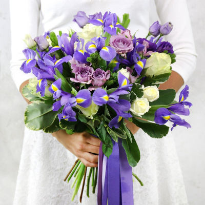 Букет невесты из ирисов, белых роз и фрезии| 4 900 Р | без скидки |