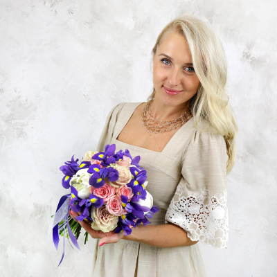 Букет невесты из ирисов, роз и фрезии| 5 100 Р | без скидки |