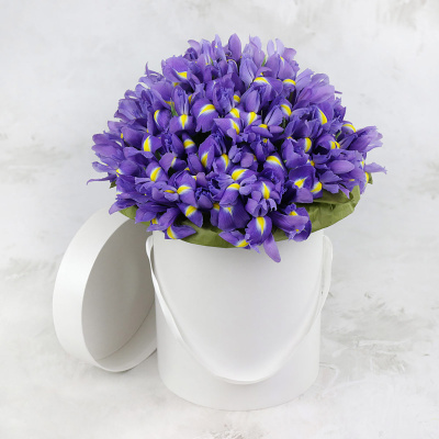 51 ирис в шляпной коробке| 10 200 Р | без скидки |