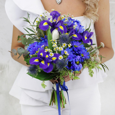 Букет невесты из ирисов, капса и хризантемы| 6 500 Р | без скидки |
