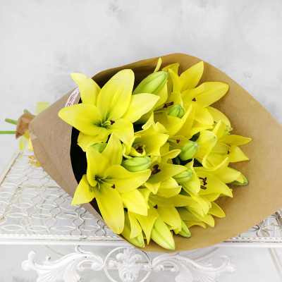 Букет из 5 желтых лилий в крафте| 4 500 Р | без скидки |