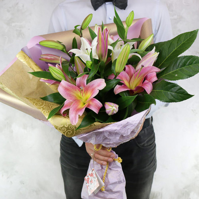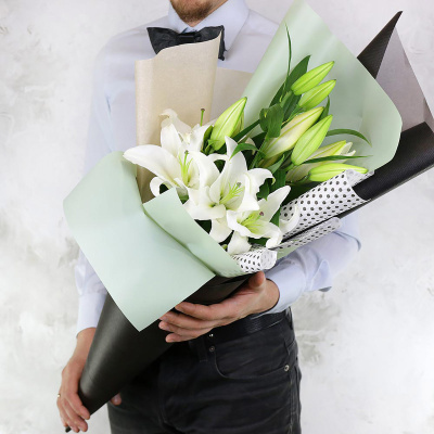 Букет из восточных лилий в стильной упаковке| 4 100 Р | без скидки |