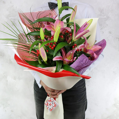 Букет из восточных лилий и гиперикума| 5 400 Р | без скидки |