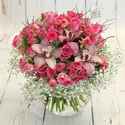 Букет из розовых роз и орхидей| 10 500 Р | без скидки |