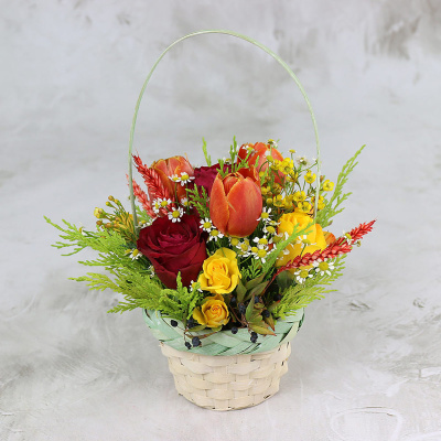 Маленькая корзина с розами, тюльпанами и ромашками| 4 800 Р | без скидки |