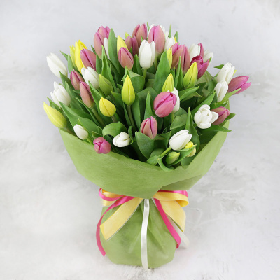 Букет из 51 разноцветных тюльпанов в фетре| 12 900 Р | без скидки |