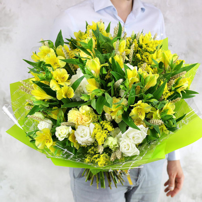 Авторский букет из роз, альстромерий и фрезии| 11 300 Р | без скидки |