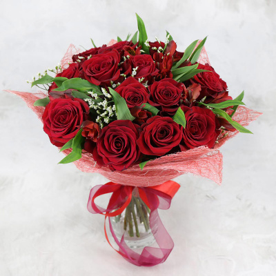 Букет из роз, лимониума и альстромерий| 7 300 Р | без скидки |