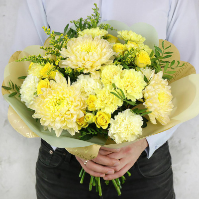 Букет из хризантем, роз и гвоздик| 4 700 Р | без скидки |