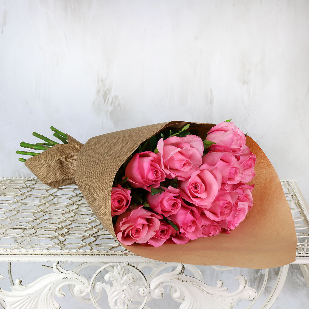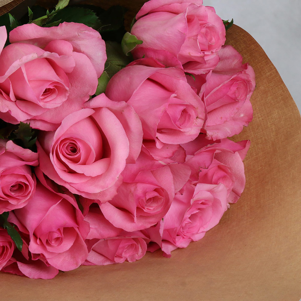 Букет из 11 розовых роз в крафте Кения 40 см.