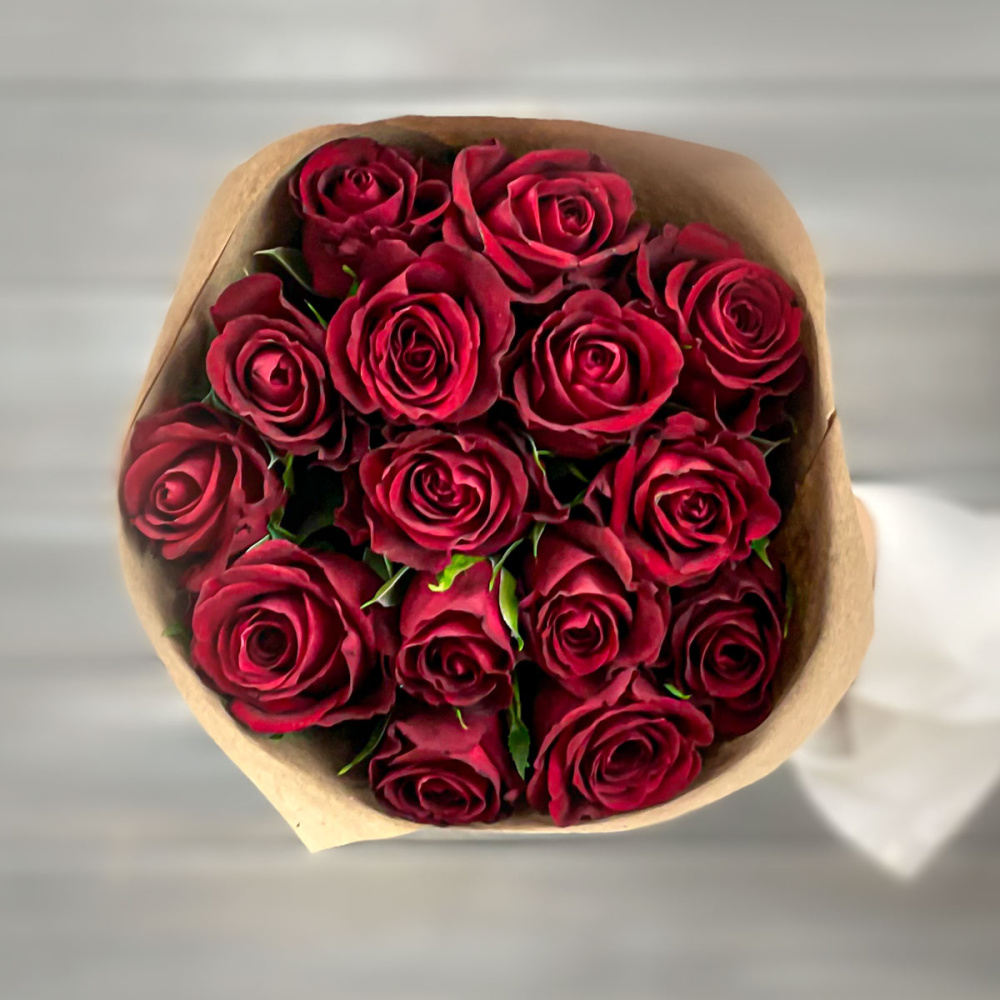 Роза 40 см,Бумага упаковочная Крафт,Лента,Плёнка прозрачная