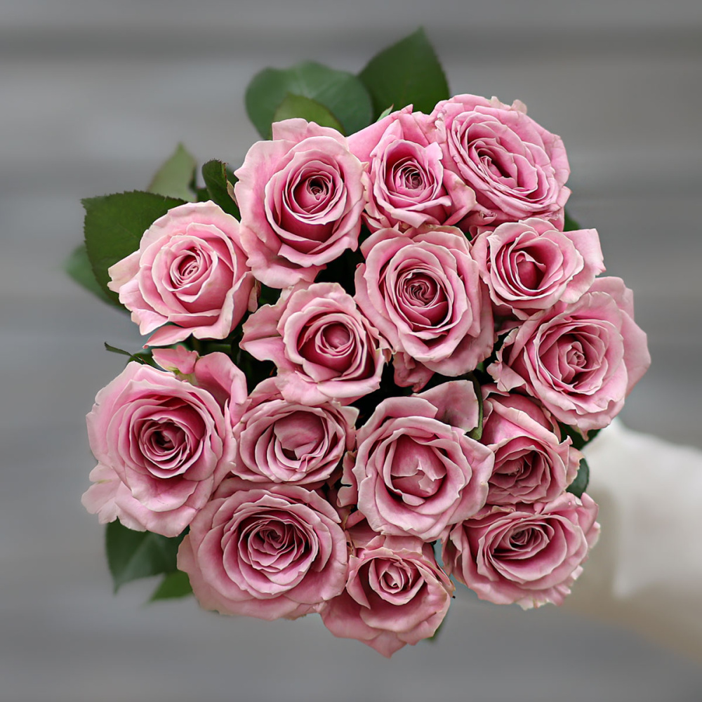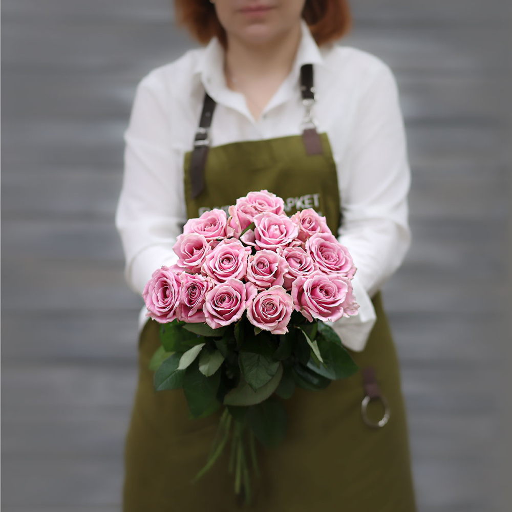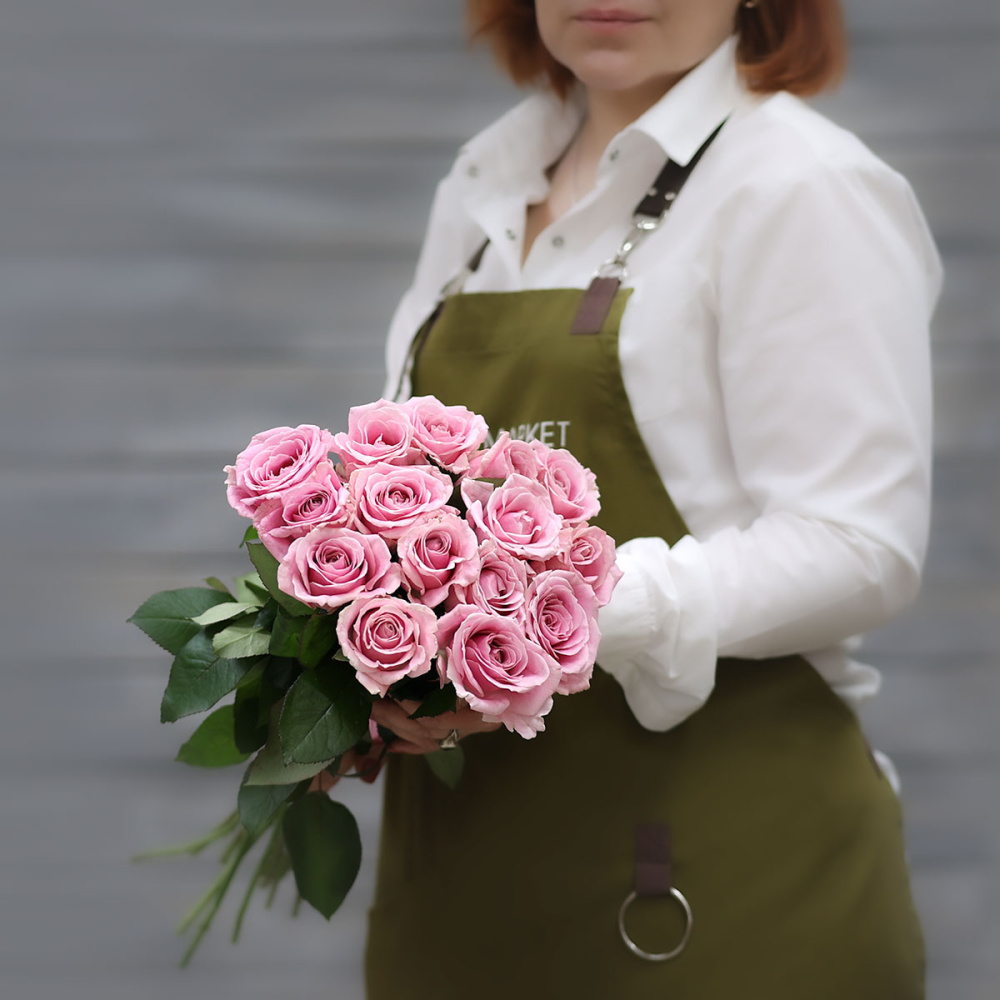 Букет из 15 нежно-розовых роз (Россия) с лентой 60 см