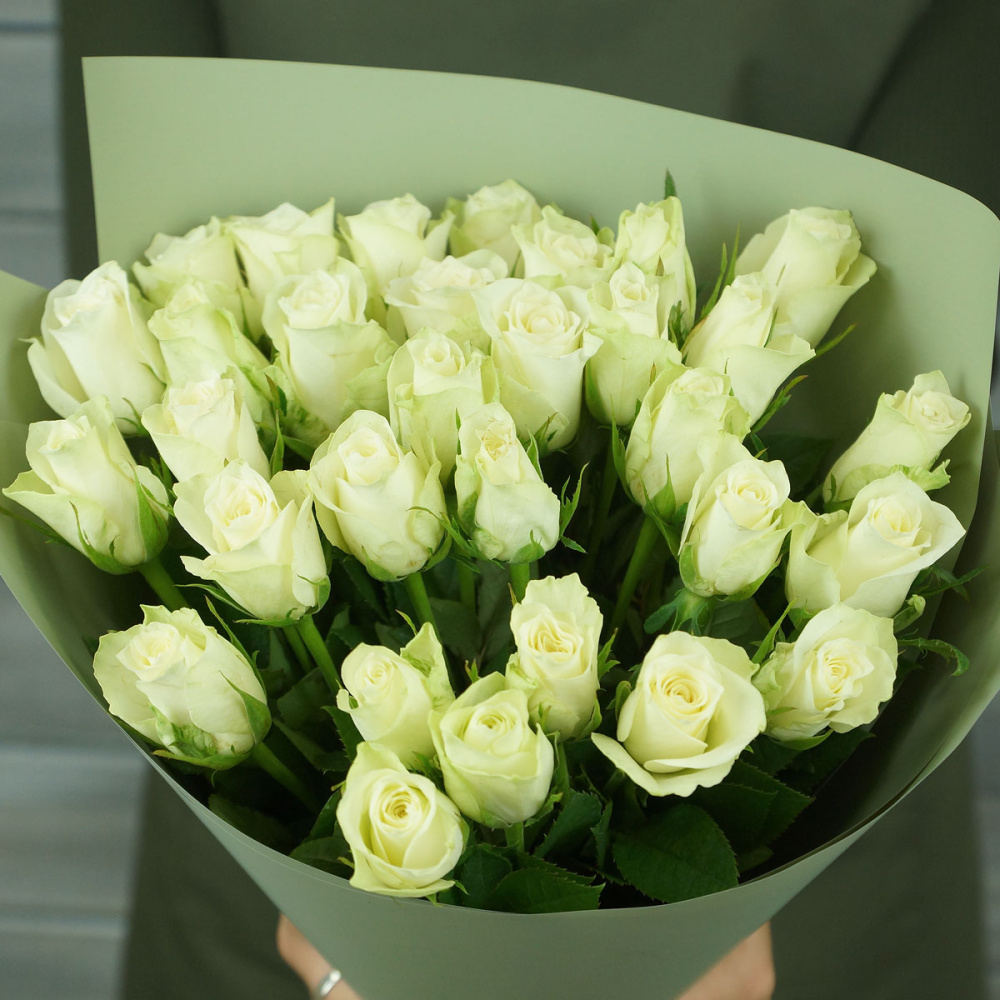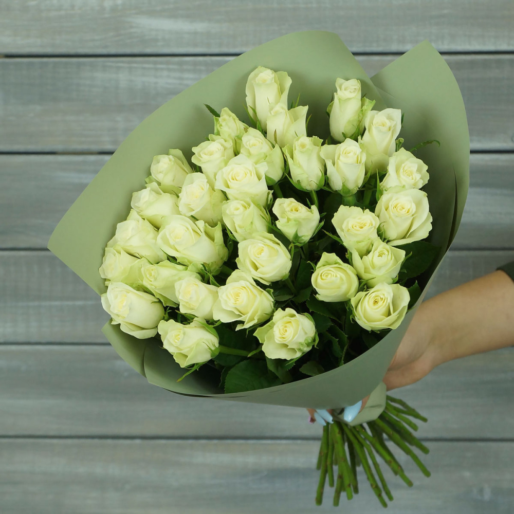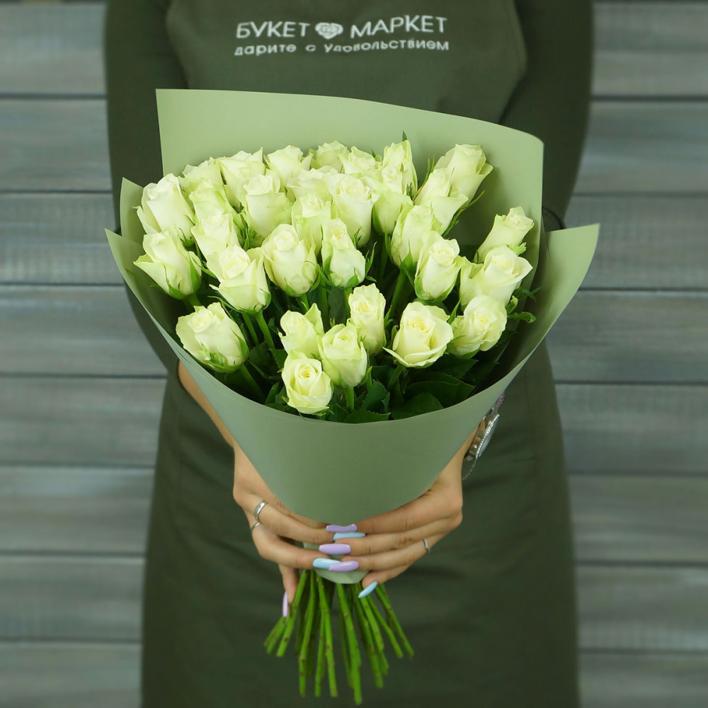 Букет из 29 белых роз в упаковке Кения 40 см.