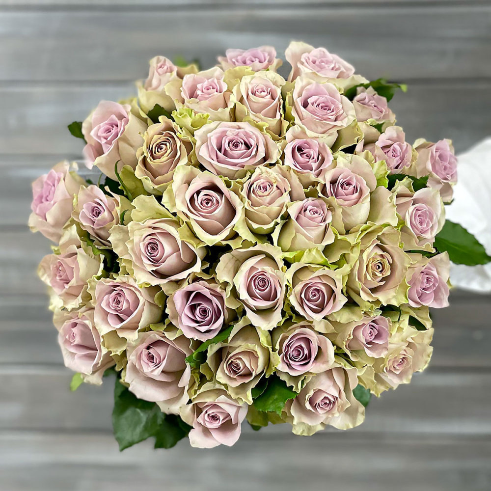 Букет из 29 сиреневых роз с лентой Кения 40 см.
