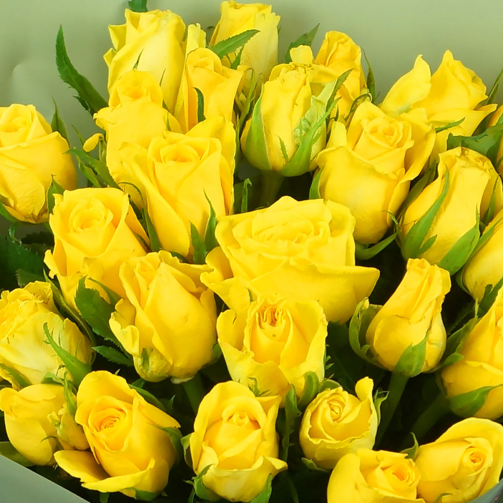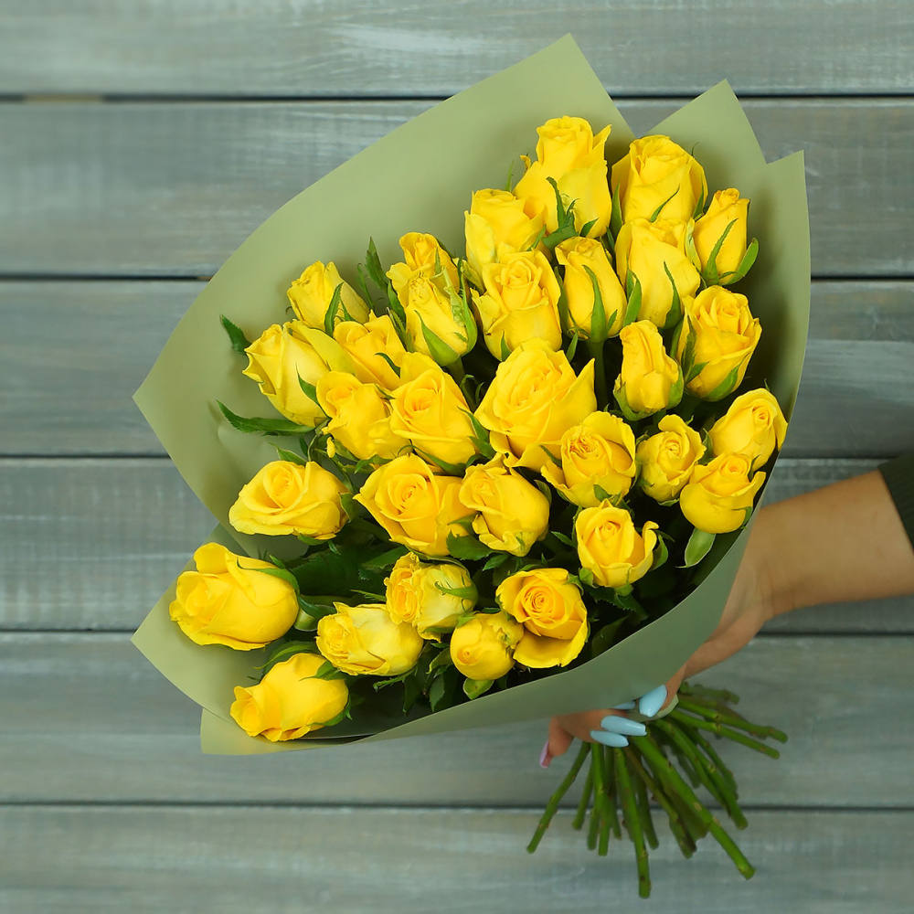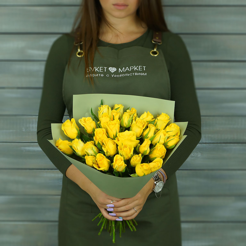 Букет из 29 желтых роз в упаковке Кения 40 см.