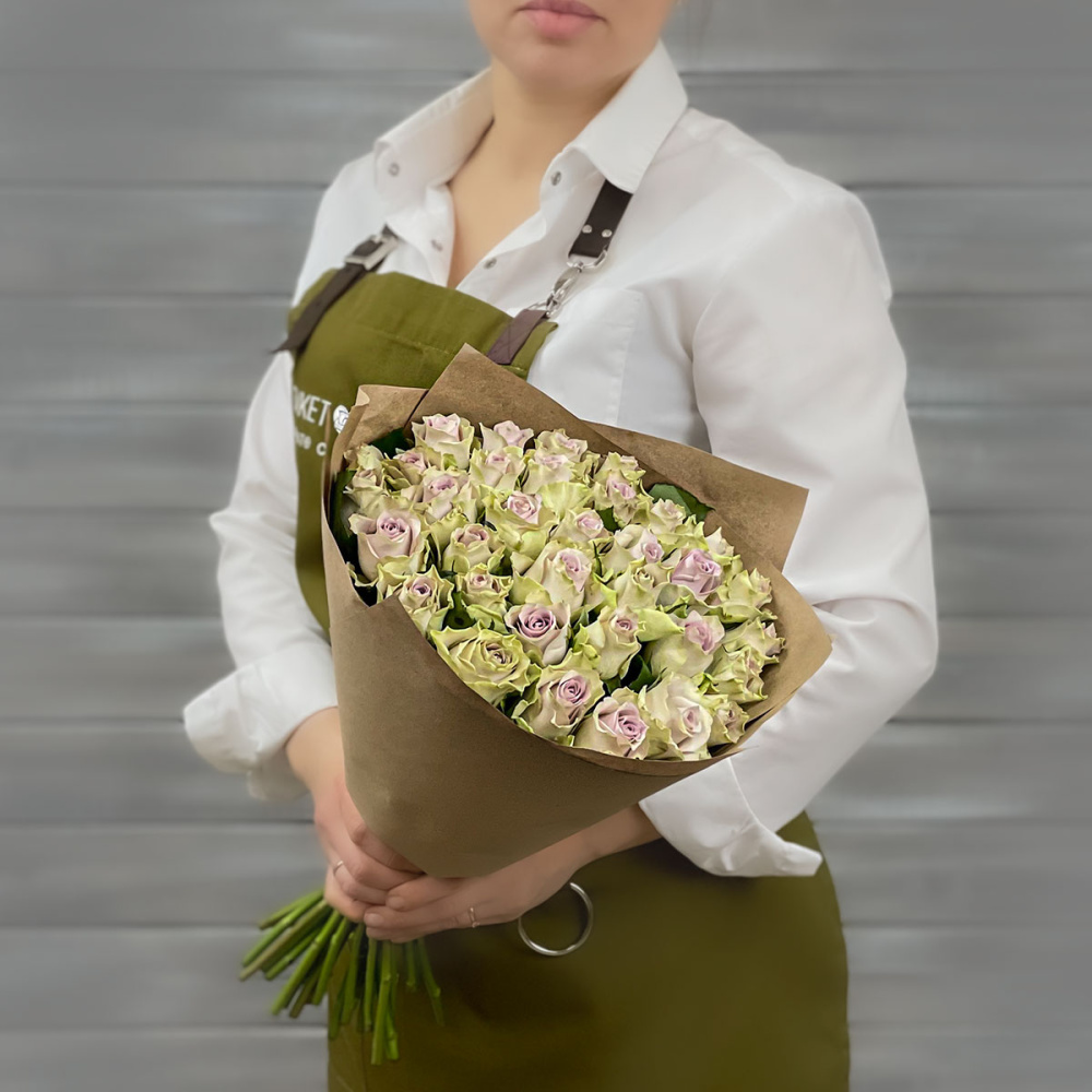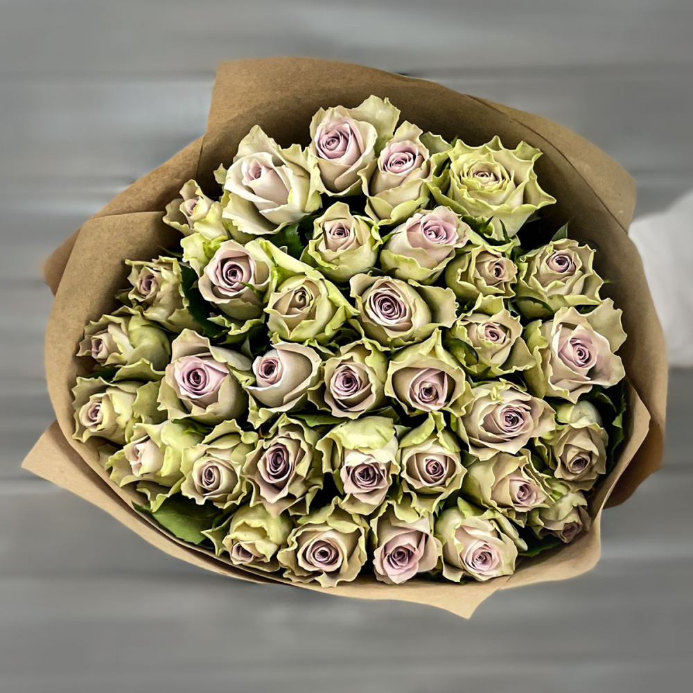 Букет из 31 сиреневой розы в крафте Кения 40 см.