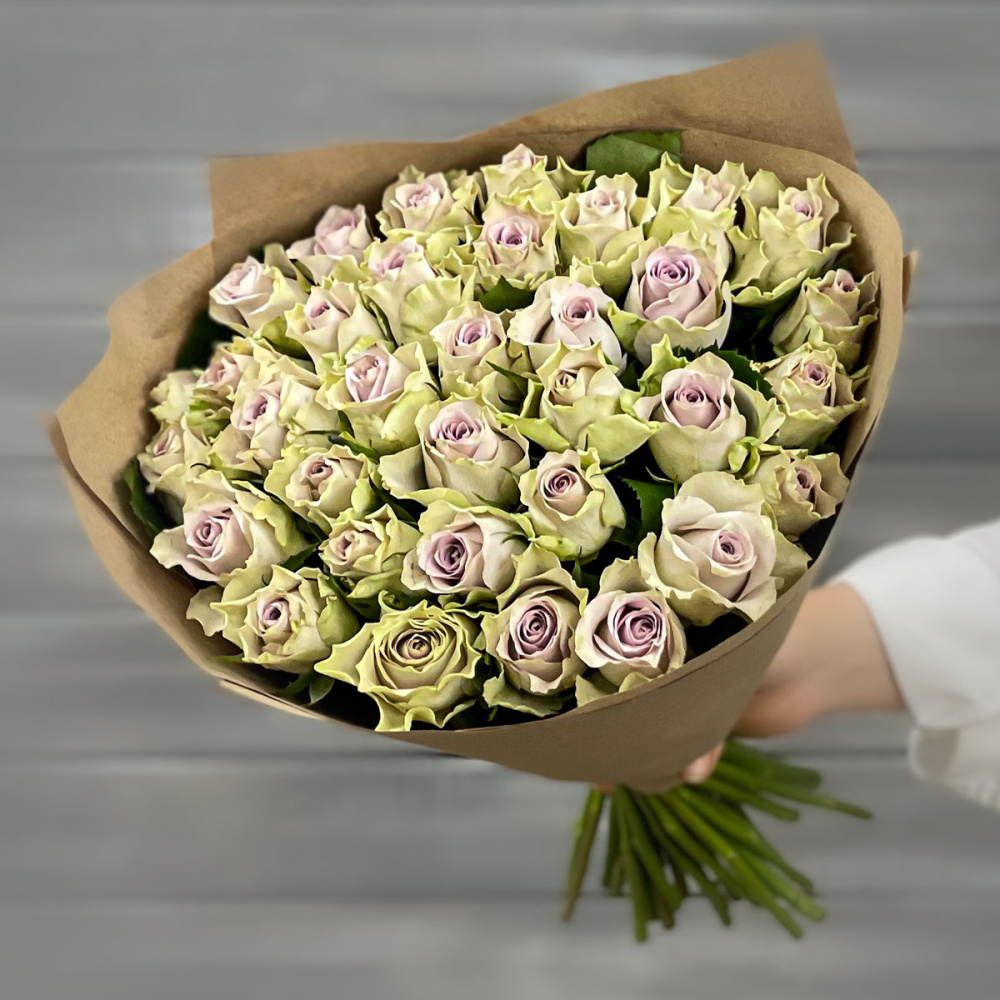 Букет из 33 сиреневых роз в крафте Кения 40 см.
