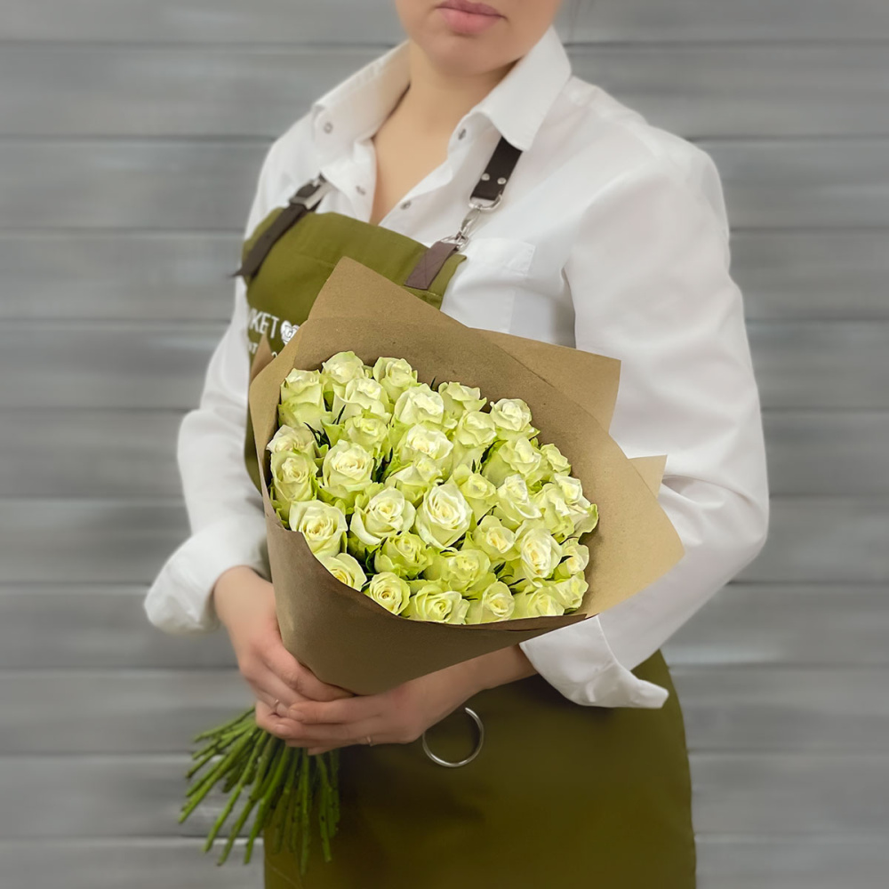 Букет из 39 белых роз в крафте Кения 40 см.